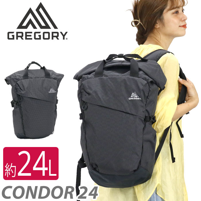 デイパックの王様・グレゴリー製の”CONDOR24”です。 素材はポリエステル/ナイロン、容量は24リットル。 メインコンパートネントはロールトップ式、内外にポケットが5つあり、持ち物の仕分けは容易です。 見た目より、入ります。厳選なさらないと、背負うとき大変になります。