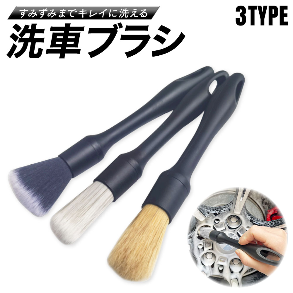 こちらの洗車ブラシはいかがでしょうか。毛質の異なる3種のブラシで細かい部分までしっかりと掃除ができて便利だと思います。