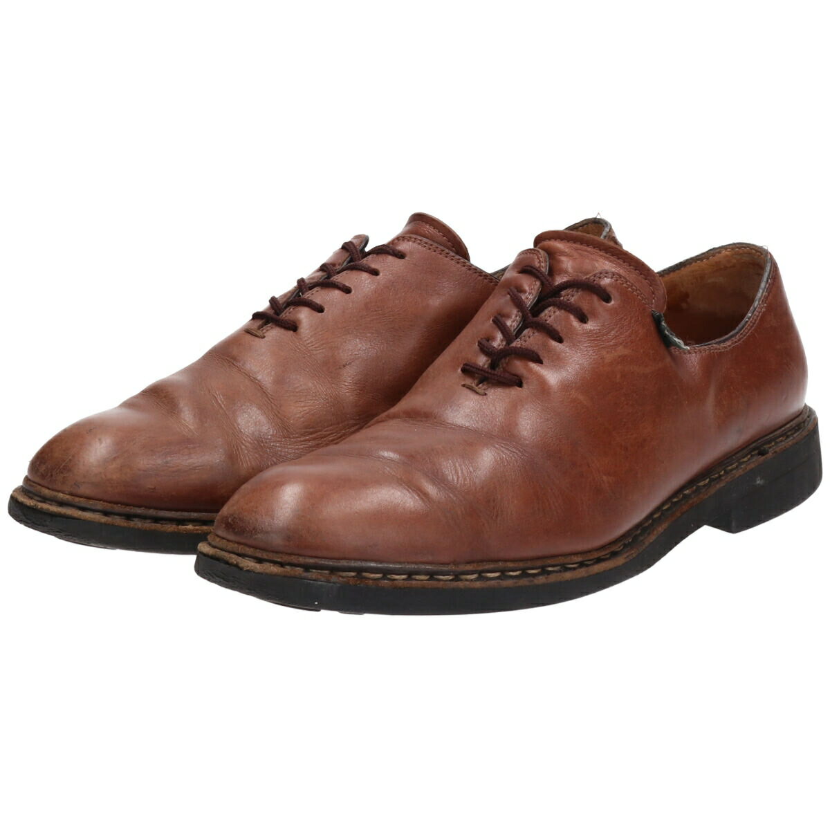 このパラブーツのホールカットレザーシューズは、フランス製の高品質な一足で、丈夫で洗練されたデザインが特徴です。古着としては状態も良好で、メンズ27.5cmサイズは快適なフィット感を提供します。シンプルながらも上品な印象を与えるため、ビジネスやカジュアルシーンどちらでも活躍します。耐久性も高く、長く愛用できるアイテムです。