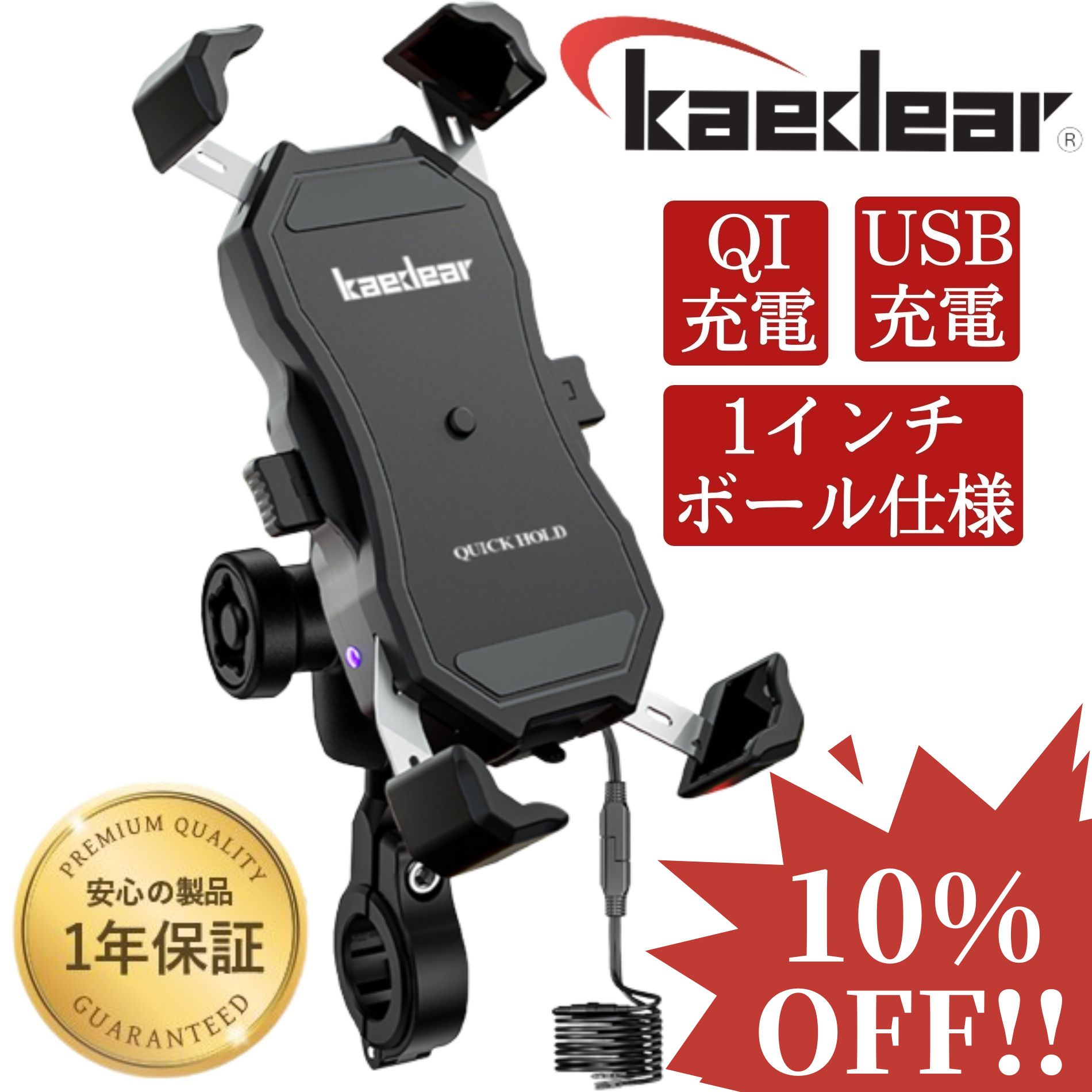 Kaedear(カエディア) スマホ ホルダー バイク ワイヤレス 充電 qi usb 携帯 ホルダー バイク用 【 クイックホールド qi & USB 切